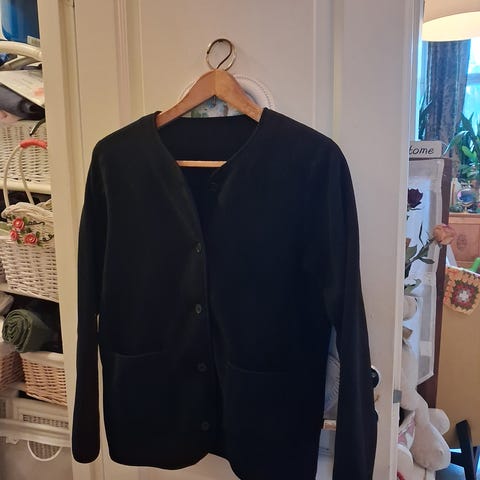 Pusero/jakku käyttämätön. Koko M. Polyesteri. Napit. Taskut. Kitin värinen. Japanilaistyylinen.