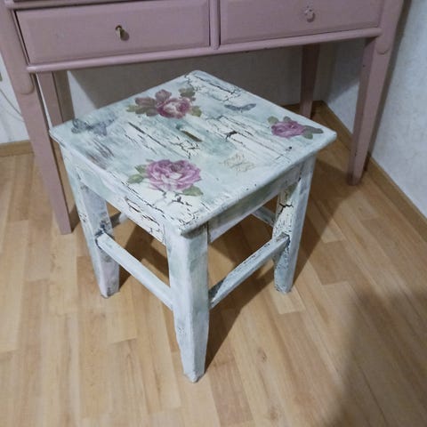 Kauniisti ajan patinoima koivujakkara 50-luvulta.