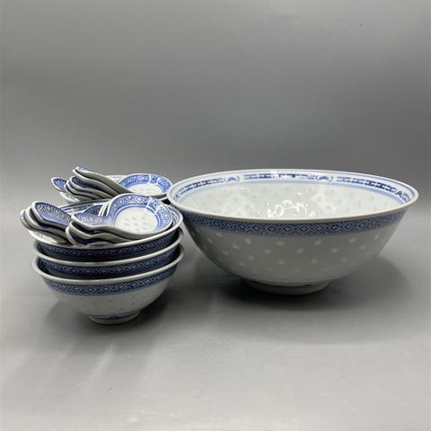 Hyväkuntoiset teekannu, 6kpl kippoja ja iso kulho.