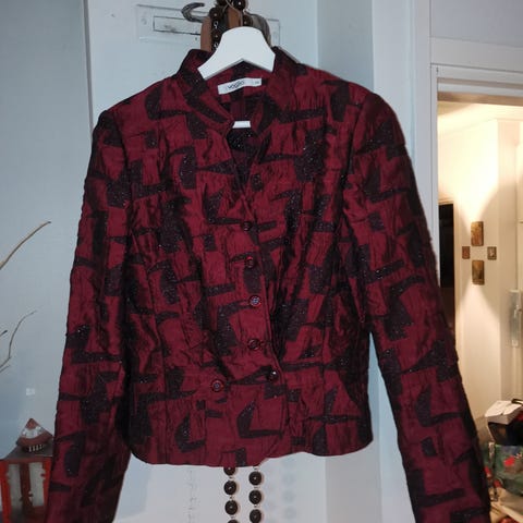Käyttämätön jakku, Suomalaista laatua ja suomalainen mitoitus. Satiinivuori lisää jämäkkyyttä ja käytön mukavuutta. Piilotaskut. Menee vuoden ympäri kaikkiin mahdollisiin juhliin ja tyylikkääseen arkipukeutumiseen toki myös. Liikun alueella Lahti-Heinola-Mikkeli-Savonlinna-Parikkala tai voin lähettää Toridiilillä tai ilman
