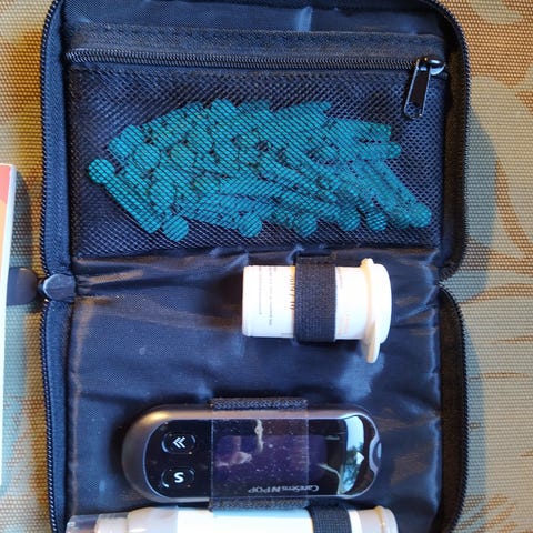 Veren sokerin mittauslaite FreeStyle Freedom Lite. Pakettiin kuuluu mittalaite, ihon rei'itin ja rei'ittimien kärkiä 100 kpl. Mittausliuskat on kaikki käytetty. Laitteen litium nappiparisto on uusittava. Tyhjä paristo on paikallaan "mallina". Hinta 15 euroa.