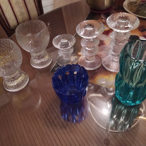 Tuikkualustat 2 kpl Merilasi Tulivuori ja Muurla lasi Joulu munakenno, uusia ei käytössä ollut, myydään yhdessä, postitus onnistuu.