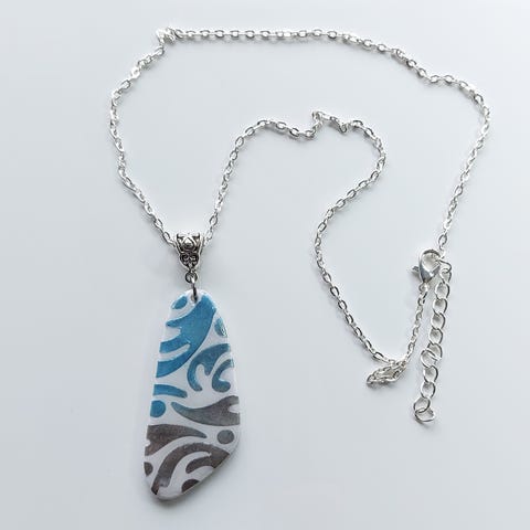 Käsintehty kaulakoru. Luonnonvalkoinen turkoosi + sininen lapis lazuli + hematiitti. Pituus 86 cm + 8 cm riipus.