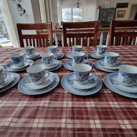 Kaunis, klassinen, sinivalkoinen 73 -osainen 12 hengen astiasto.
