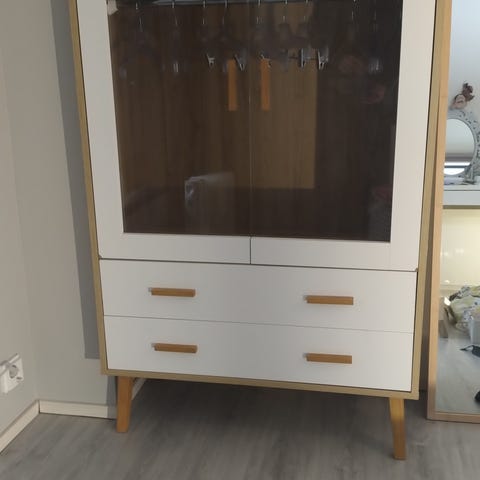 Myydään hyväkuntoinen vaatekaappi, valkoinen runko, tammiovet. Jyskin fandrup.