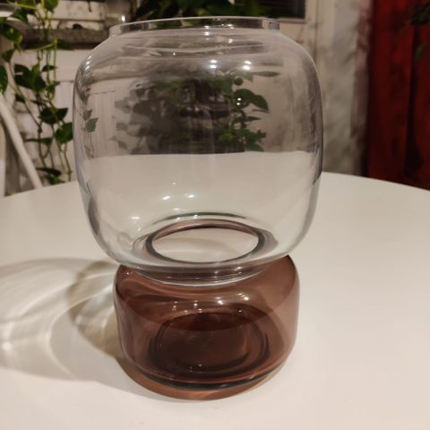 Pentik kynttilälyhty korkeus 30 cm, halkaisija 13 cm. Lasi on irrallinen metallijalasta.