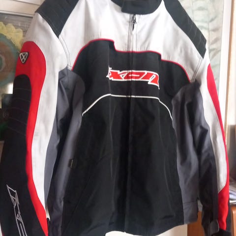 Myydään miesten musta/oranssi ajotakki Ixon Diablo, koko L. Kunto hyvä.
