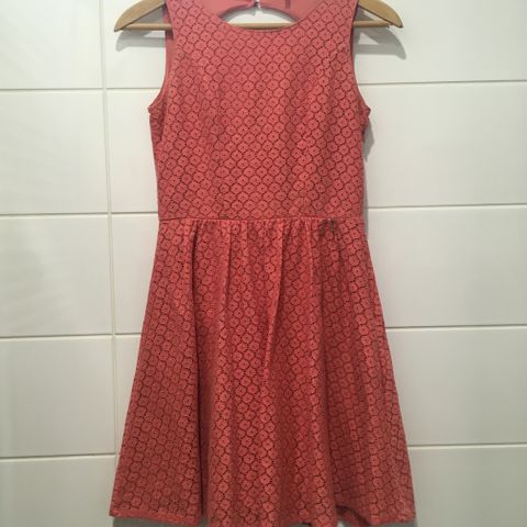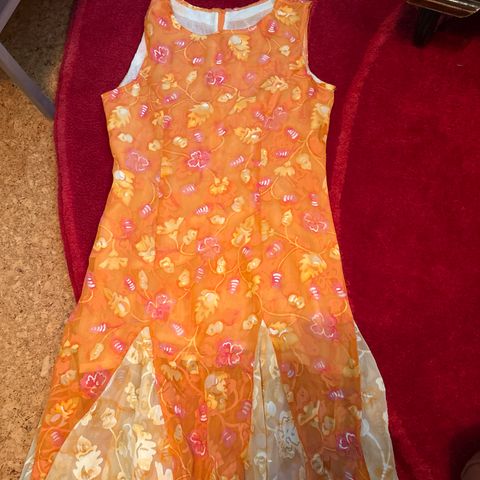 Upea oranssi satiininen kesämekko. Myyn pois, koska oli itselleni liian iso. Kokolapussa S, mutta vastaa mielestäni enemmän M-kokoa. Helmassa, rinnassa ja selässä kaunis pitsireuna.