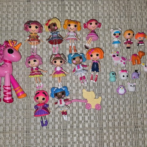 Kaksi erilaista Lalaloopsy nukkea tarvikkeineen