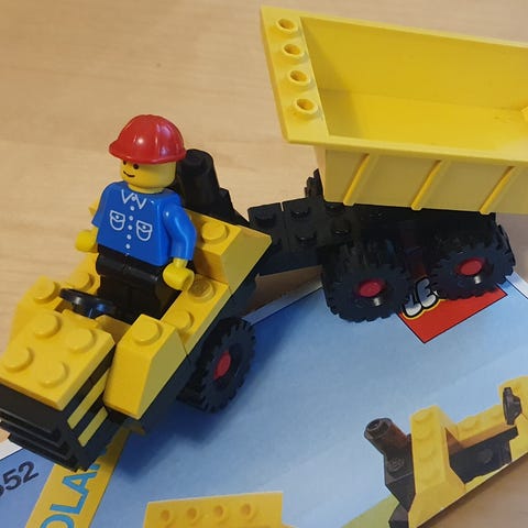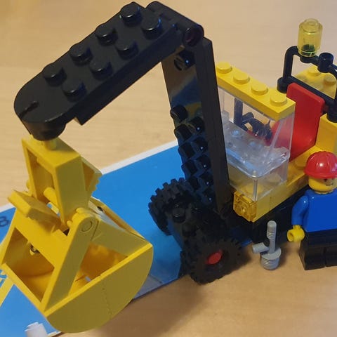Kuvan mukainen vanha käytetty 80-luvun bulldozer, ohje värituloste. Kauhasta puuttuu yksi piikki. Ei laatikkoa.