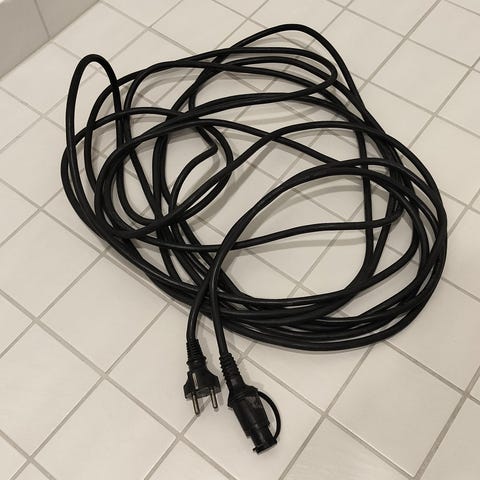 Uusi 2,5 metrin mittainen käyttämätön Defa mini kulmapistokkeella ja ledilampulla säilytyslaukussaan 15€.