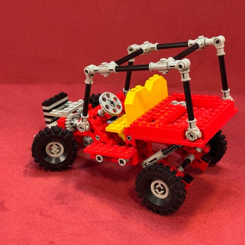 Kuvan mukainen vanha käytetty 80-luvun technic lego auto, ohje värituloste. Ei laatikkoa.