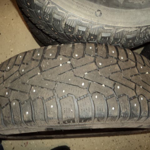 Erittäin hyväkuntoiset nastarenkaat aluvanteilla. Pintaa jäljellä 7-8,5 mm. Olleet Fabian alla.