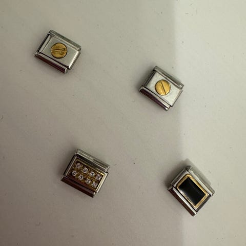 Yhteensä 5 ei aitoa palaa (harry potter, hevosenkenkä, vaaleanpunaiset sydämmet, leppäkerttu, glitter)