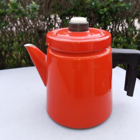 Myydään Finelin vanha kahvipannu. Muutama ruosteläikkä sisällä. Kannen nuppi keikkuu, kannessa kuvan mukaista kulumaa ja lohkeamaa.
