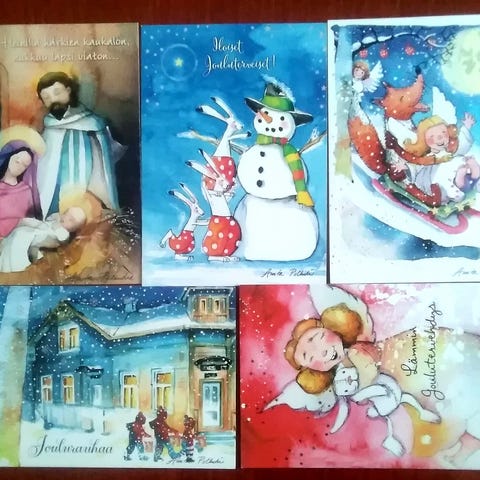 Joulupostikortit, 6 kpl. Uuden. Kuva: Anita Polkutie.
