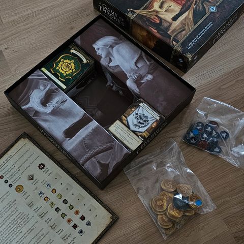 Todella hyväkuntoinen tietovisapeli Game of Thrones-sarjan kausista 1-4. Sisältää kaikki osat mm. 200 kaksipuoleista kysymyskorttia ja englanninkieliset ohjeet. Peli kokonaan englanniksi.