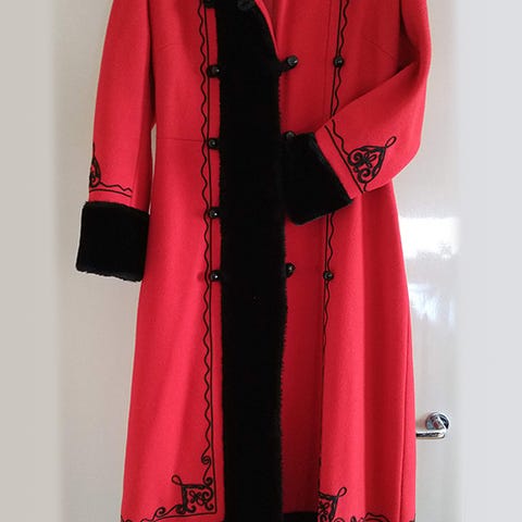 Sataneuleen Suomessa valmistettu hehkuvan punainen hihaton toppi ohuehkoa, joustavaa lurexia. Pienet muotoleikkaukset rinnan kohdalla, muuten toppi on malliltaan melko suora, hieman helmaa kohti levenevä.