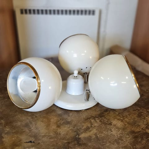Vanhat kromiset pallovalot. Siistit. nämä saa kattoon tai vaikka seinälle.