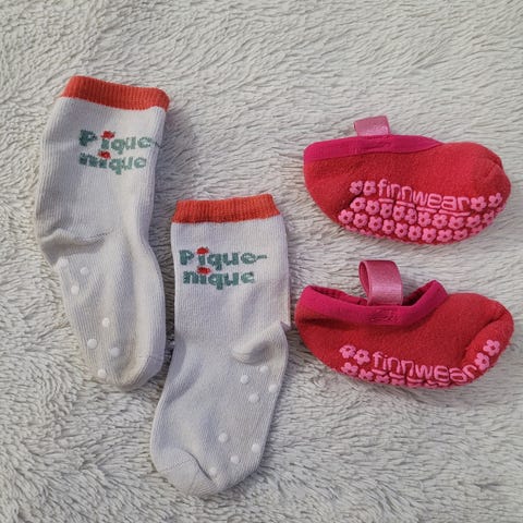 2 pairs of Finnwear non-slip socks, size 19-22. Bought new and used by one child. In good condition - no holes, no stains. Clean and intact. Non-smoking household. Pick up from Kivistö / shipping with ToriDiili.
