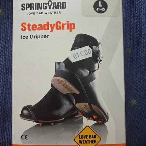 Snow Fox Pito liukuesteet kenkiin. Koko M 36-40. Kuusi pitävää ja vaihdettavaa metallinastaa. TPR-lämpökumia. Venytetään kengän kärjen ja kantapään päälle. Näihin on saatavissa varanastat.