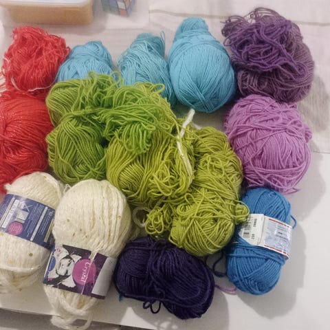 4 kerää yksiväristä ja 4 kerää siihen sävytettyä lankaa