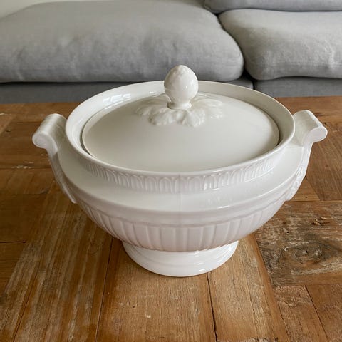 Villeroy & Bochin soikea kannellinen keittokulho. Materiaali Fine China. Vain nouto.