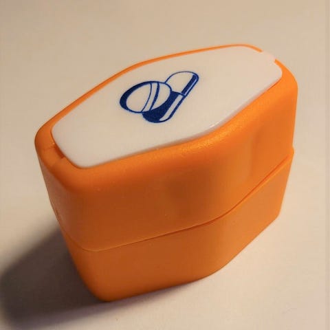 Hauskat yhteensopivat valkoinen pillerin murskain ja pinkki puolittaja. Molemmissa tilaa muutamille pillereille