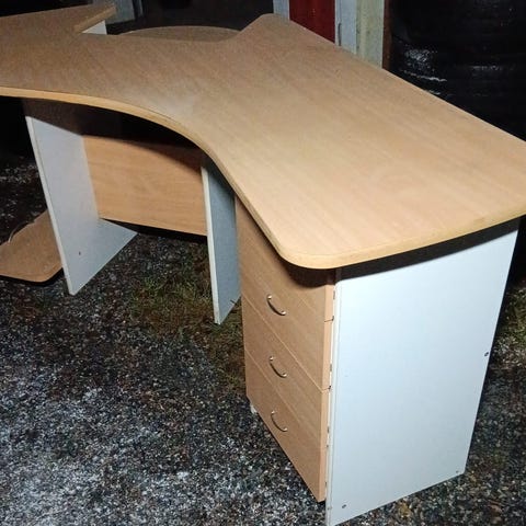 Täysin ehjä ja siisti tietokonepöytä, jonka lumisade yllätti kuvauksen aikana. Säilytetty sisätilassa.