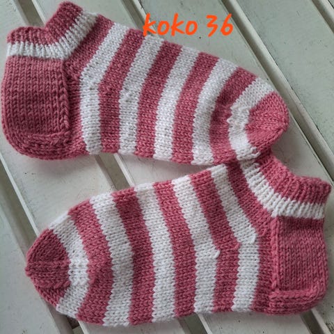 Käsinneulotut nilkkavillasukat, koko 36/37. (Lapa 24 cm).