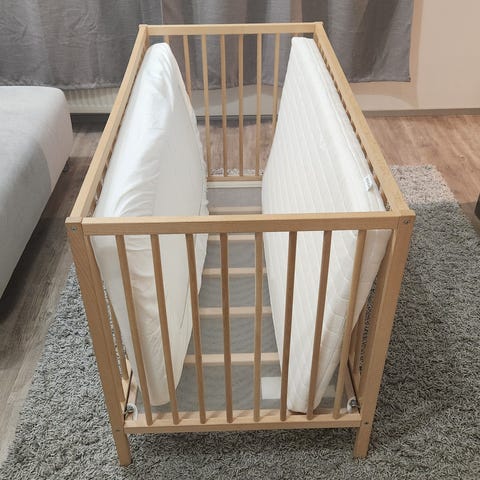 Hyväkuntoinen pinnasänky juniori laidalla. Pohjan korkeus säätö. Pinnalaidassa irroitettavat pinnat. Juniori laita kiinni.