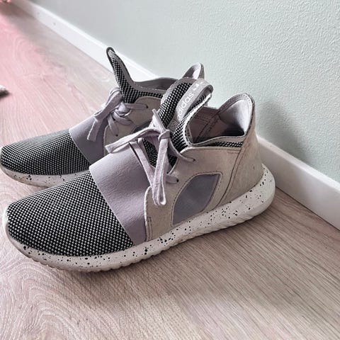 Myytävänä hyväkuntoiset beigenväriset Adidas Oz veego nimiset tennarit kokoa 39 1/3. Nouto Turusta tai postitus