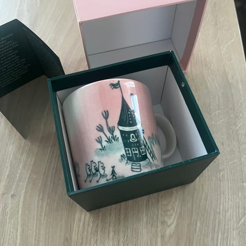 Käyttämätön alkuperäisessä pakkauksessa oleva Muumi 80v Koti-muki.