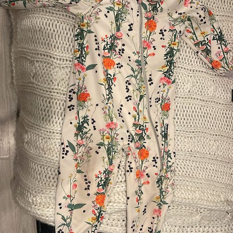 Siisti käytetty, ei reikiä mutta pehmentymää/kulumaa polvissa, pepussa ja lahkeen sisäsivuissa. Tummentumaa on pepussa ja polvissa mutta kuosi on hyvin anteeksiantava. Ehjät jalkalenkit.