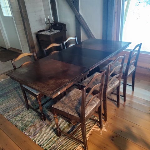 Myydään vanhat täyspuiset talonpoikais ruokatuolit ja pöytä kuudelle hengelle 1900-luvun alusta. Kauniisti patinoitunut koivu materiaalina.