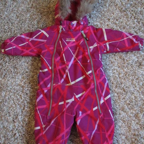 Haalarissa on irroitettava huppu, samoin karvan saa irti (esim. pesua varten). Hihansuissa kuminauhat ja painonapit. Lahkeensuissa kuminauhat ja jalkalenksut. Selässä pätkä kuminauhaa kerää liian väljyyden. Hupussa tarralla saa istuvuutta paranneltua. Kaksi pitkää vetoketjua helpottavat pukemista. Ei eroa uudesta! Pullea ja lämmin haalari.