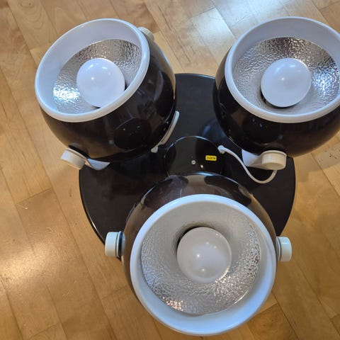 Tyylikäs vanha valaisin. Pöytä vaihtui niin ei sovi enään tyyliin. Yrjö Harsian suunnittelema.
