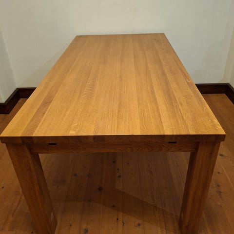 Hieno ja näyttävä pöytä! Täältä ostettu ja todettu, ettei sovikaan valittuun paikkaan. Todella siisti pöytä, kuitenkin naarmuja pinnassa ja pieni "pala" pois pöydän sivusta, näkyy kuvissa. Pöytä on painava.