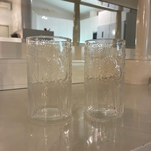 Yhden lasin pohjassa pieni pripsu, ei haittaa käyttöä, kuva 6. Muut lasit uudenveroisia.
