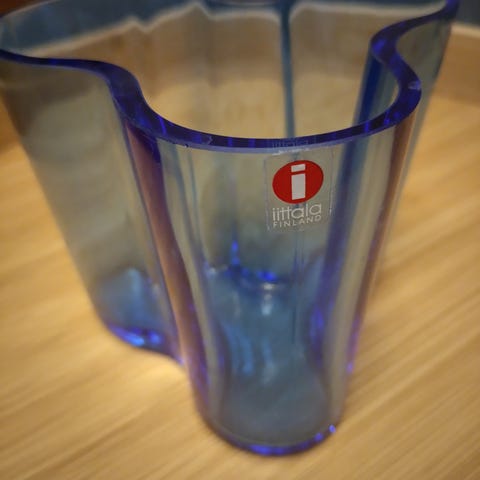 Myyn hyväkuntoisen valkoisen pienen Aalto-maljakon 95mm Tarra kuitenkin puuttuu.