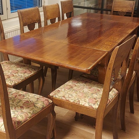 Tuoleja 4 kpl , istuimet mielyttävät istua , jousitetut. Verhoilut kuin uudet. Ryhmä todella hieno.