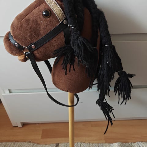 Yhden tytön leikeistä, muiden keppareiden ohella käytetty. Varressa näkyy tarkemmin. Katsottuna käytönjälkeä, hepan silmissä myös, mutta siisti kauttaaltaan.