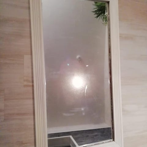 Myydään 56 x 60 cm seinäpeili, ostettu kirpputorilta. Kauniit siniset lasit kehyksinä, art deco -tyyliä.