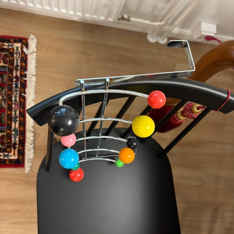 Vihreä naulakko oven päälle. Runko metallia, nuoit puuta. Oven max paksuus n. 4,7cm. Naulakon korkeus 22,5cm. Nouto tai postitus.