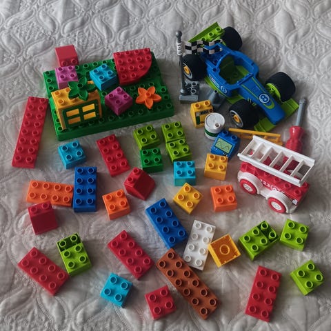 Kuvassa näkyvä setti Duplo palikoita. Ovat pestyjä.