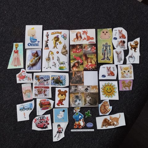 Kirjasta otettu vain muutama tarra.