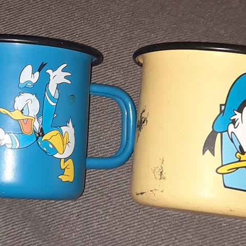 Harmaat Muurla Emalimukit 6 kpl. Yhden pohjassa ja kahvassa on pieni jälki, mikä näkyy viimeisissä kuvissa. Muiden kunto on kuin uusi.
