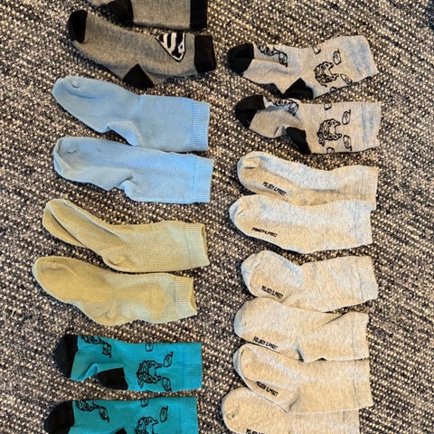 10kpl paketti poikien sukkia koossa 28-30. Paketti pitää sisällään eri värisiä sukkapareja kuvan mukaisesti.