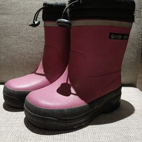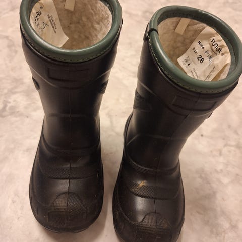 Vuorilliset kumisaappaat, koko 26/27. Kunto hyvä käytetty.