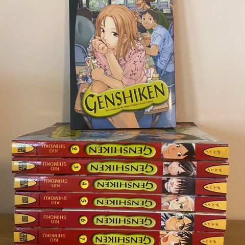Hyväkuntoiset Genshiken kirjat englanniksi. Osassa kirjoista iän tuomaa kellastumaa. Volume 8:ssa hieman kulmat rytyssä.